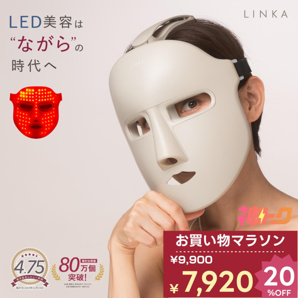 LINKAウェアラブル7LEDマスクは楽天ランキングでも常に上位で、LEDマスクをはじめて使ってみたい人にぴったりです。