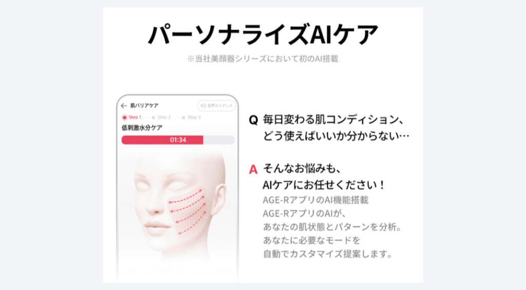 - AIサポート:AIが肌状態をみて必要なモードを提案してくれる