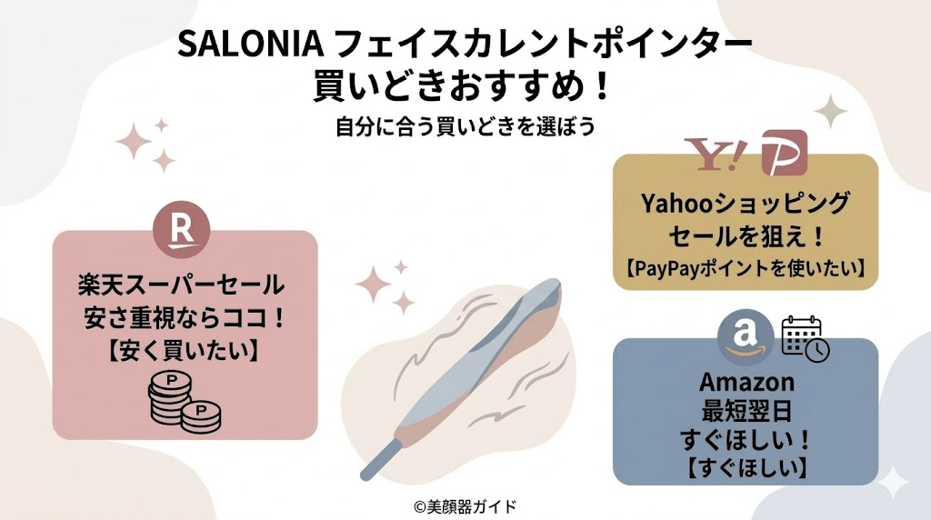 本記事では、SALONIAフェイスカレントポインターの最安値と、一番お得な買い方を解説しました。